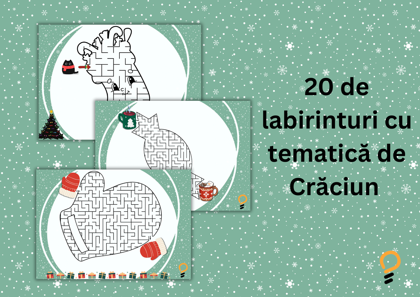 Adaugă un strop de magie sărbătorilor cu Carte cu Labirinturi de Crăciun! Această carte digitală conține 20 de labirinturi captivante cu tematică de Crăciun, de la ușor la dificil, perfecte pentru copiii de toate vârstele.