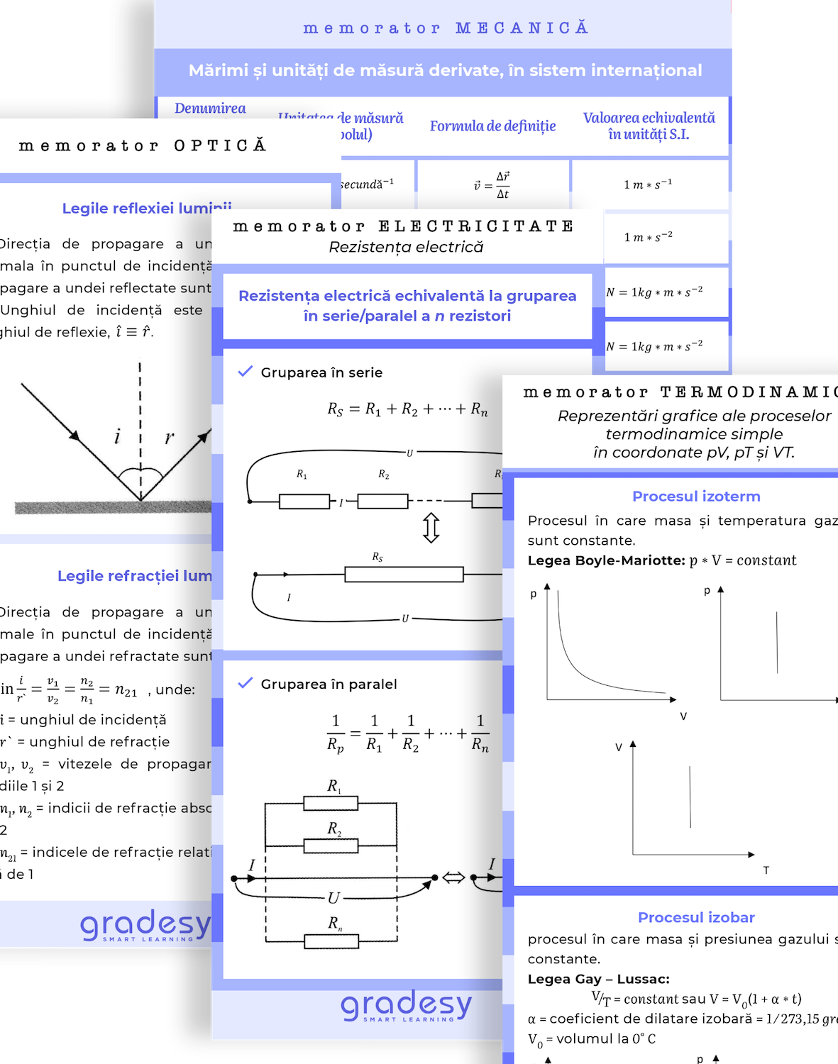 Set de memoratoare cu informații cheie din materia de fizică, după cum urmează: